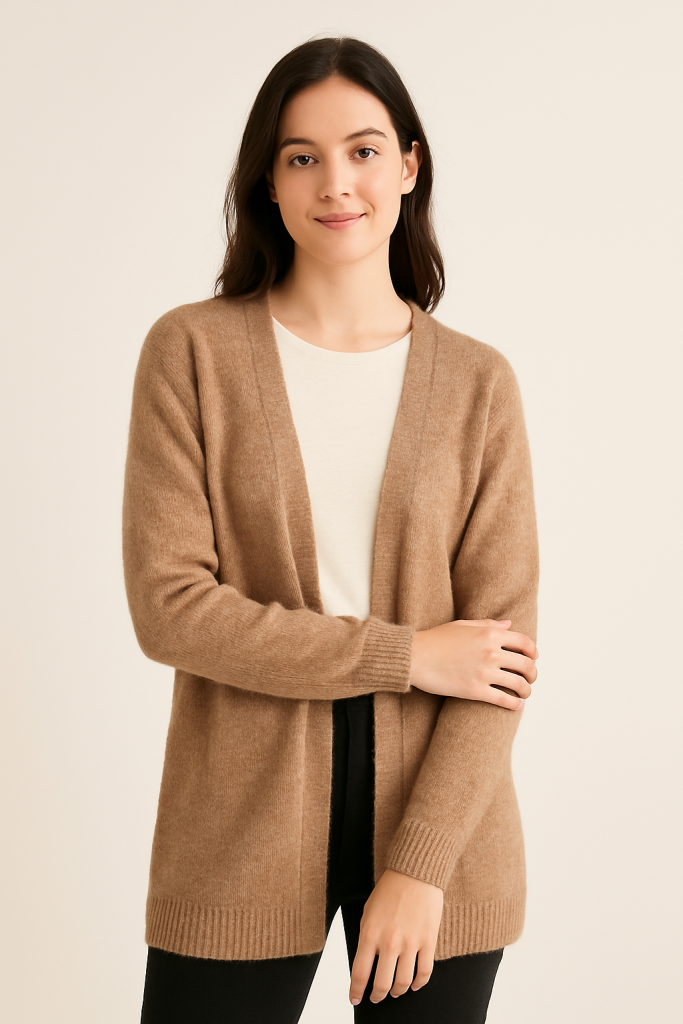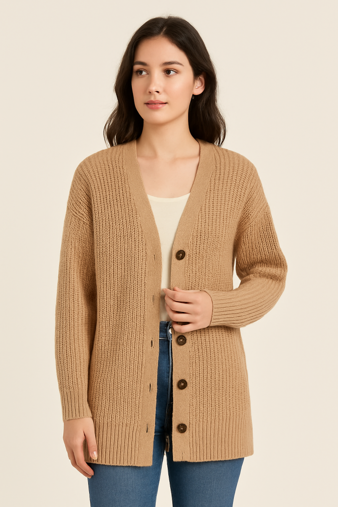“The Cozy Knit Cardigan is my new favourite! It’s light but still keeps me warm. Perfect for campus or casual dates.”
